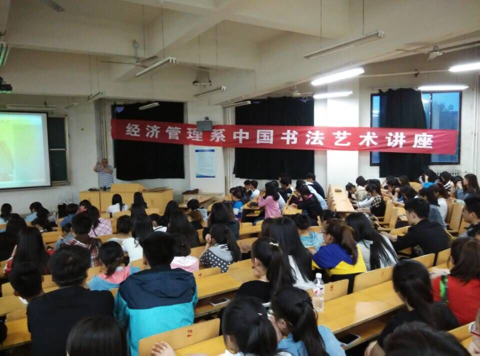 5月7日晚19时,我系在6号楼101举行,《中国书法艺术》专题讲座,由经济管理系李虎君教授主讲。经济管理系主任助理范世伟,部分教师及员工代表聆听了讲座。